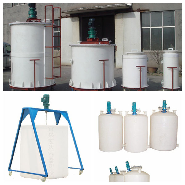 全塑攪拌罐以純聚乙烯(線性低密度聚乙烯LLDPE、高密度聚乙烯HDPE)為原料,采用特殊的滾塑工藝整體成型。具有無焊接、不滲漏、無毒性、重量輕、抗老化、抗沖擊、耐腐蝕、壽命長等優點。一體成型整體性、耐腐蝕、長壽命優點比較突出。塑料儲罐能儲存和反應絕大多數無機酸、堿、鹽類溶液和大部分有機溶劑,能部分替代不銹鋼鈦、鎳、高級合金鋼等材料,全塑攪拌桶產品符合危險品儲運條例,是儲存反應化工腐蝕溶液、潔凈溶液合適的儲存容器。